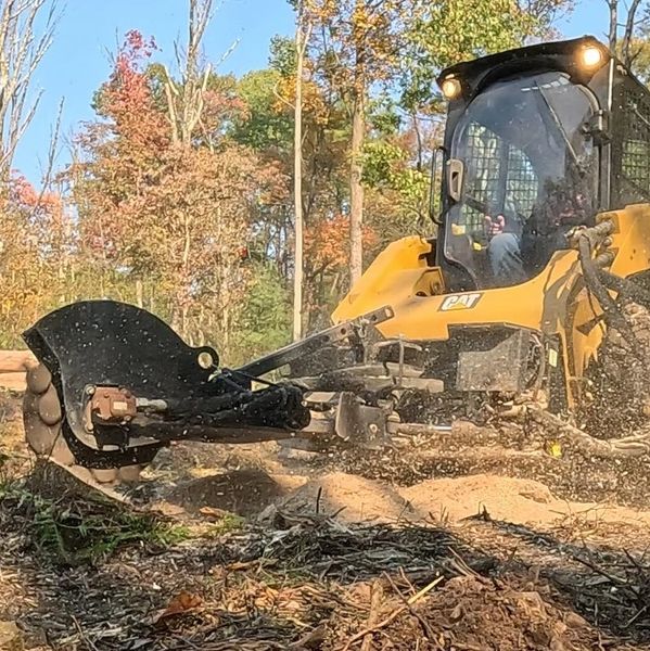 Forestry mulching utilizes one machine to cut, grind, and clear overgrown and unwanted vegetation. With small to medium sized vegetation, it is much more efficient than traditional land clearing and leaves behind a fine mulch that will quickly compost back into the soil.